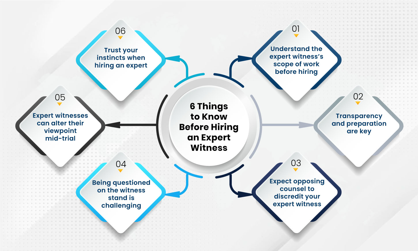 Opposing counsel's job is to make your expert's testimony seem irrelevant, and they will hope to achieve this by attempting to discredit your expert witness. Get the right expert by selecting a professional with the appropriate qualifications and credibility/authority in their field.