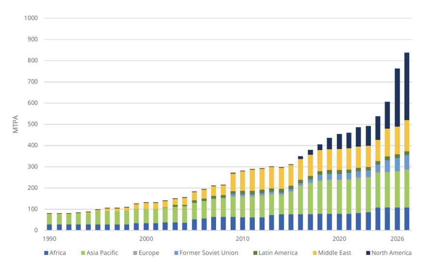 Global LNG Capacity Growth 1990-2027 (Source:IGU)