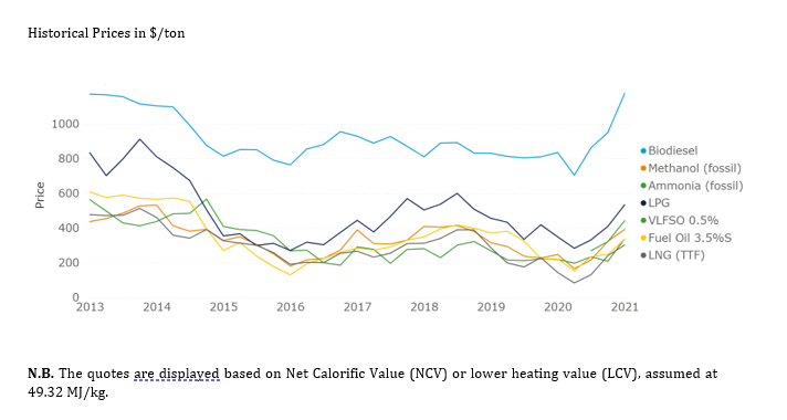 N.B. The quotes are displayed based on Net Calorific Value (NCV) or lower heating value (LCV), assumed at 49.32 MJ/kg.