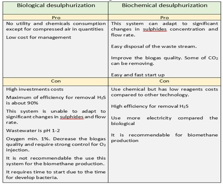 We can comment that several factors can determine the use of one method or another of biogas desulfurization, among them: