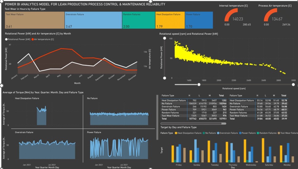 Using Data Models for descriptive and diagnostic analytics for product quality is important in understanding how the process behaves under different times, different settings, and process parameters. The manufacturing process data is logged over time in databases through the cloud and big data services - which can help aggregate metrics/KPIs and analyze patterns, trends, and product-related risks. Additionally, it helps layer down into the details of why the product is behaving in a certain way by layering the data model itself in different layers. The above dashboard illustrates how business intelligence tools like PowerBI can help look deep into product quality in terms of the root cause, special conditions, and reliability.