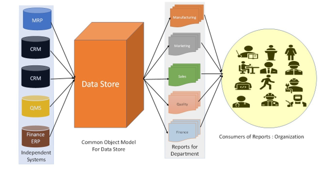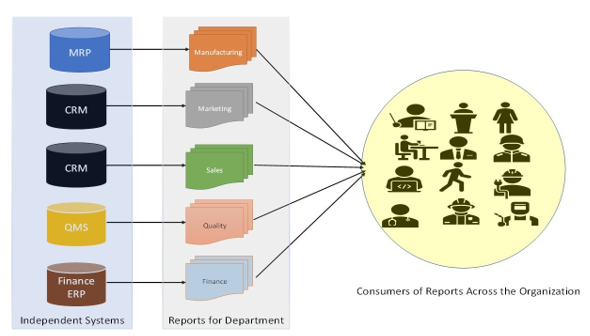 In this case, data is derived directly from feeding independent systems and reports are provided to the organization, however, there are limitations and constraints in this mode of information extraction for decision making