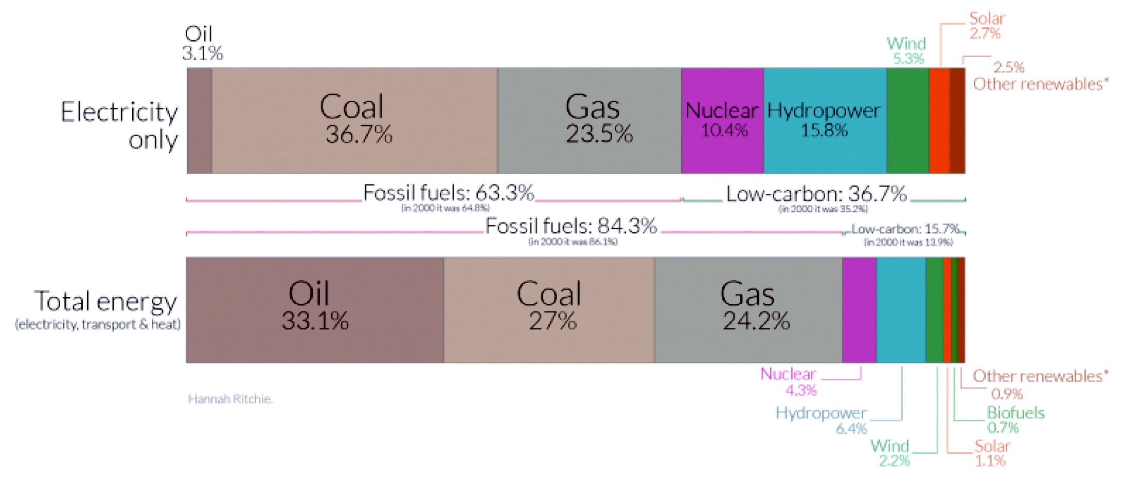- Heavy fuel power stations – 900-950 g CO2 / kWh