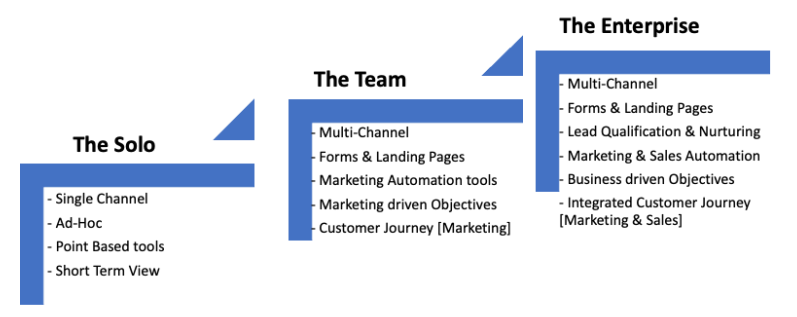 Despite the growth of marketing automation, it should be noted that maturity is not directly proportional to the size of a company. There have been numerous instances when marketing departments in large enterprises still work in isolation. In other cases, smaller agencies have a well-integrated and mature approach to marketing.