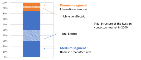 The situation began to change in the 1990s, when the Soviet Union collapsed and international manufacturers — Schneider Electric among them — started opening subsidiaries in the country. By the beginning of the 2000s, the market for contactors was composed of two distinct segments with quite different levels of quality: product from international and domestic manufacturers, which marketing specialists called “premium” and “medium” segments respectively.