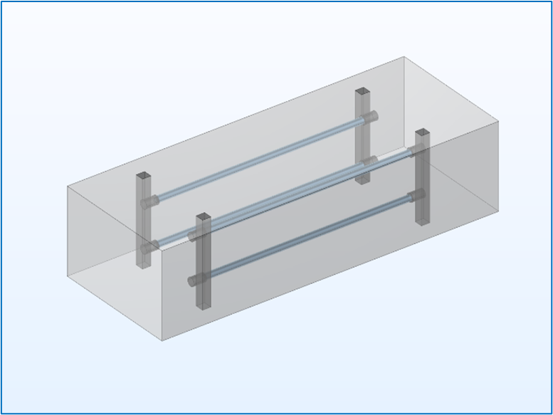 Figure 2. A basic HVAC conduit CAD model with four conventional LP Hg lamps installed parallel to the direction of airflow.