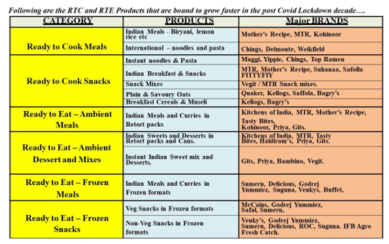 Working from Home and more Home Stays will stir up demand for the Ready to Cook and Ready to Eat Foods: As experienced during the Lockdown period, Working from Home has been found to be more fruitful and productive for many industries apart from the Software and allied industries. Hence in the future post Novel, Covid Pandomic Lockdown most Companies will look at Working from home as the new working norm. With the regulatory social distancing to be mandatory even in many Corporates with Offices will start having staggered working hours with many personnel working for short periods and meetings at office and balance working from Home. Schools and Colleges with the need to maintain social distancing and as precautionary measures will encourage students lesser time in School / Colleges and will have alternate coaching/teaching online. This will mean that children will be more at home post the lockdown in comparison to the pre-lockdown periods. With going out for dinners/parties/clubs/weddings will be drastically reduced due to the regulatory social distancing/gatherings and new norms during the post covid lockdown, the homestays for all the family members will be drastically higher. With no roadside food joints during a large part of the post lockdown period, there will be pressure/demand at home for all types of snacking which will require the household to stock more of the following different Ready to cook snacks, Meals and Instant mixes that can be made instantly with little efforts and fuss by any member of the family.