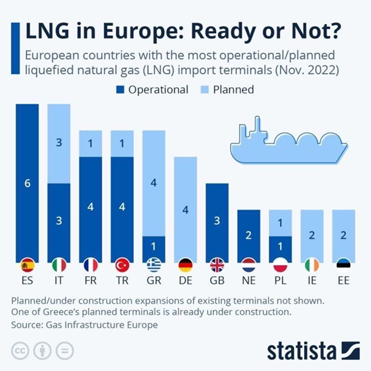 In turn, an accelerated emphasis on increasing LNG import capacity online emerged. For the next 3-4 years, the focus will be on energy security rather than energy sustainability and transition.