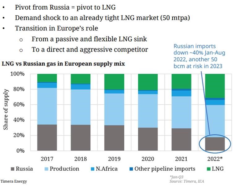 Firstly, global LNG supply cannot be increased quickly enough to offset lost imports of Russian pipeline volumes. It takes years to permit, build and commission new LNG export infrastructure and for the associated supply chains to deliver LNG to regasification locations.